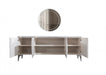 Das Prisma Sideboard vereint modernes Design mit praktischer Funktionalität. Gefertigt aus hochwertigem MDF-Holz, bietet es eine robuste und stilvolle Aufbewahrungslösung. Die eleganten Füße in Silber oder Gold verleihen Ihrem Raum einen Hauch von Luxus und Raffinesse. Perfekt, um Ordnung zu schaffen und gleichzeitig Ihr Zuhause modern und ansprechend zu gestalten.