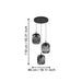 Die Pendelleuchte ROMAZZINA ist aus drei runden Lampenschirmen aus schwarzen Flachmetallstreifen gefertigt. Die Schirme sind in unterschiedlichen Höhen mittels schwarzer Textilkabel von einem runden Baldachin abgehängt. Durch die Metallbänder entstehen faszinierende Licht- und Schattenspiele, sobald die Leuchte eingeschaltet ist. Die Hängelampe mit ihren soften ballonförmigen Lampenschirmen fügt sich nahtlos in moderne Einrichtungen ein. Sie bietet ein modernes Design für jeden Raum – egal ob in der Küche, im Wohnzimmer oder im Esszimmer über einem Esstisch. Die abgebildeten Filament-Leuchtmittel sind nicht im Lieferumfang enthalten. Geeignet ist die Leuchte für jedes Leuchtmittel mit E27-Sockel.