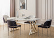 Der Star Esstisch vereint modernes Design mit hochwertiger Verarbeitung. Die Oberfläche aus foliertem MDF in eleganter Marmoroptik verleiht Ihrem Essbereich stilvolle Raffinesse. Wählen Sie zwischen luxuriösen goldfarbenen oder glänzenden Chromfüssen, die dem Tisch eine extra Portion Eleganz und Stabilität geben. Ein Möbelstück, das nicht nur durch Optik, sondern auch durch Qualität überzeugt und Ihr Zuhause aufwertet.